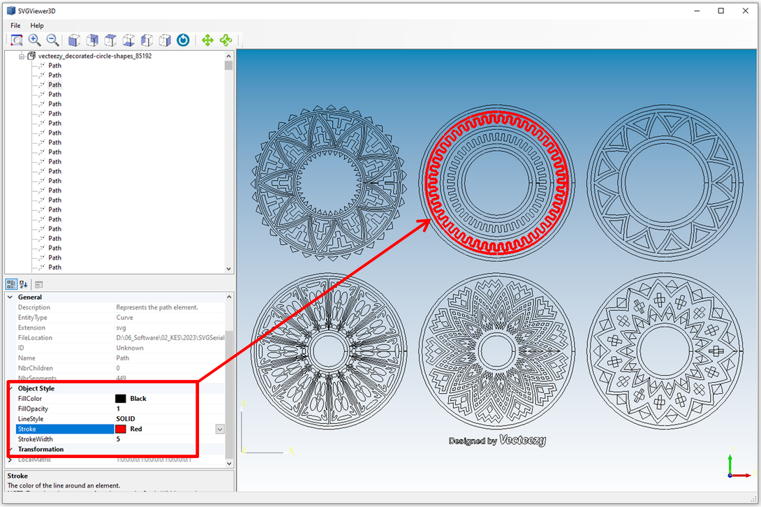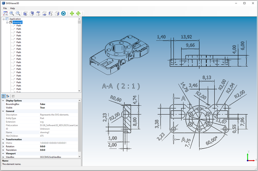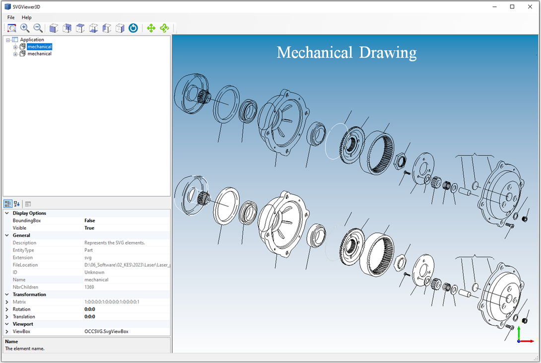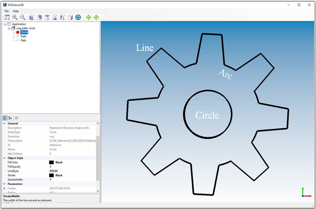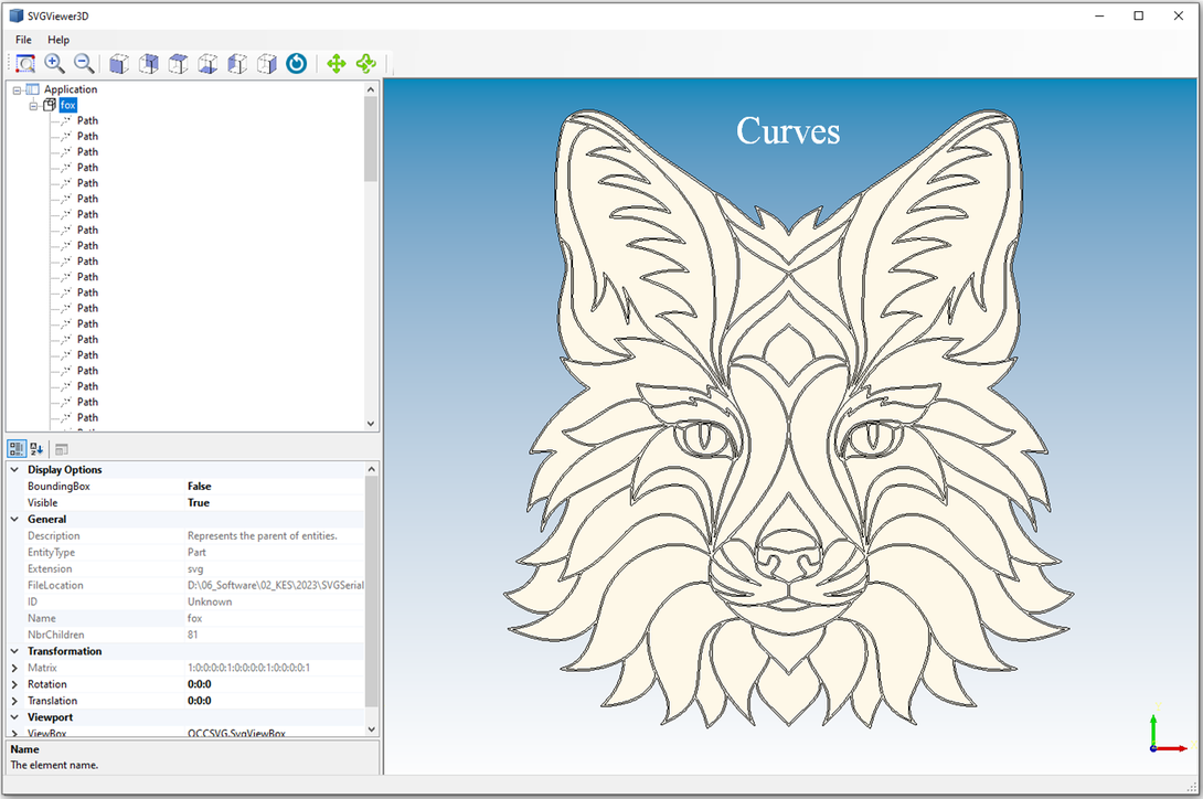 The used SVG3DViewer is available on the GitHub page. This application displays the topology of the SVG model and its elements in a Tree view. It also allows to edit the elements in the Tree, so it can be used to see how arbitrary SVG code will be displayed using the library.